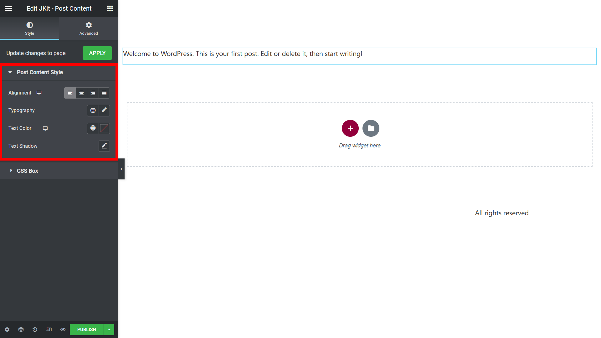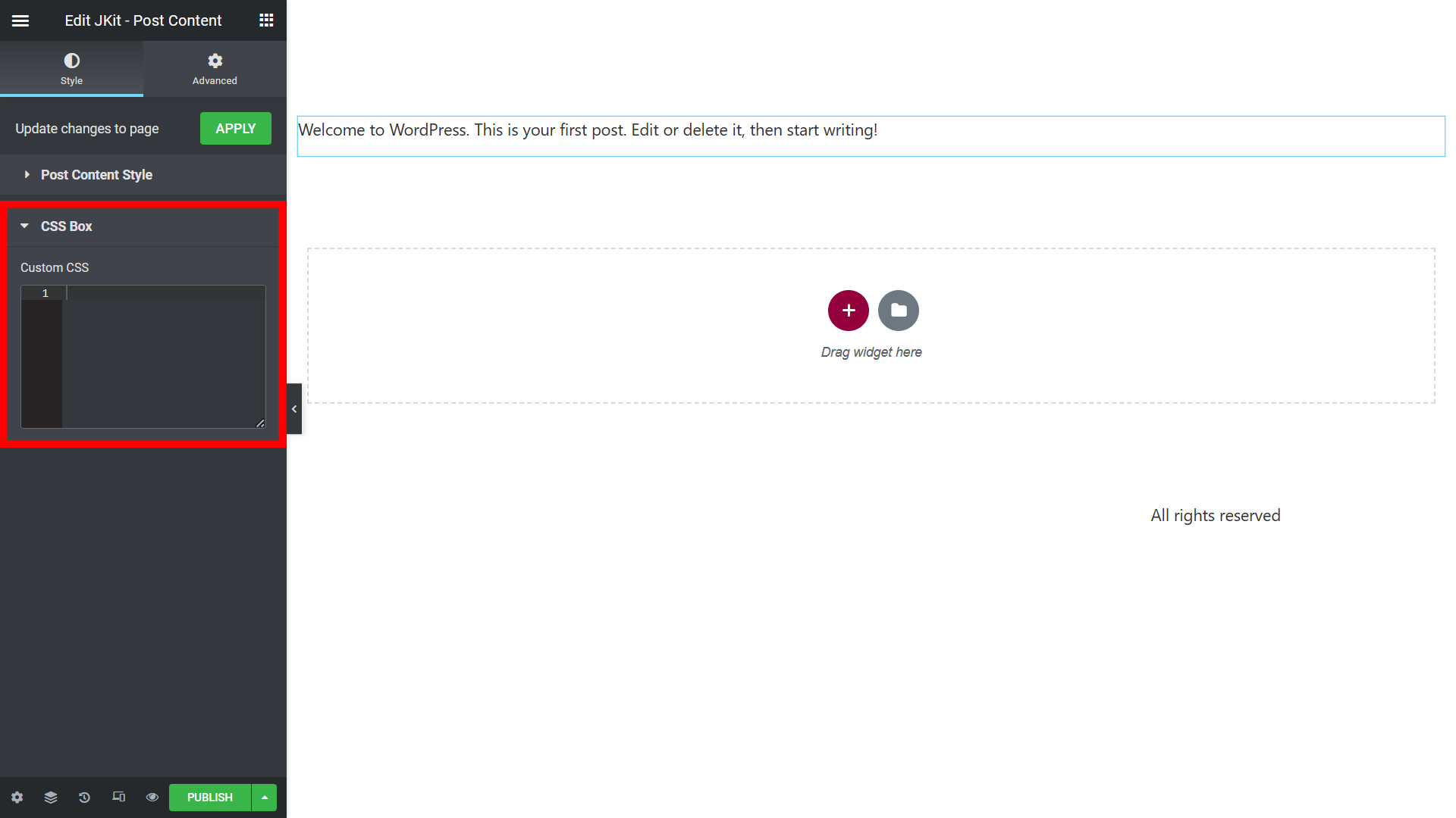 To add JKit Post Content to your page, you can open Elementor on your page, and search for “JKit – Post Content” in the sidebar.